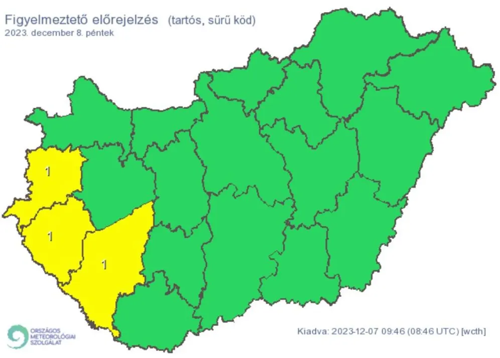 A legmagasabb nappali hőmérséklet pénteken nagyrészt -1 és +2 fok között alakul, de a napos részeken enyhébb, a tartósabban ködös tájakon kissé hidegebb lehet az idő. Merthogy ilyenből is lesz bőven, emiatt három vármegyére is elsőfokú figyelmeztetést adott ki az Országos Meteorológiai Szolgálat. A legalacsonyabb éjszakai hőmérséklet többnyire -6 és +2 fok között várható, de a nyugati és északkeletei havas, tartósabban derült részeken -10, -11 fok köré is lehűlhet a levegő.