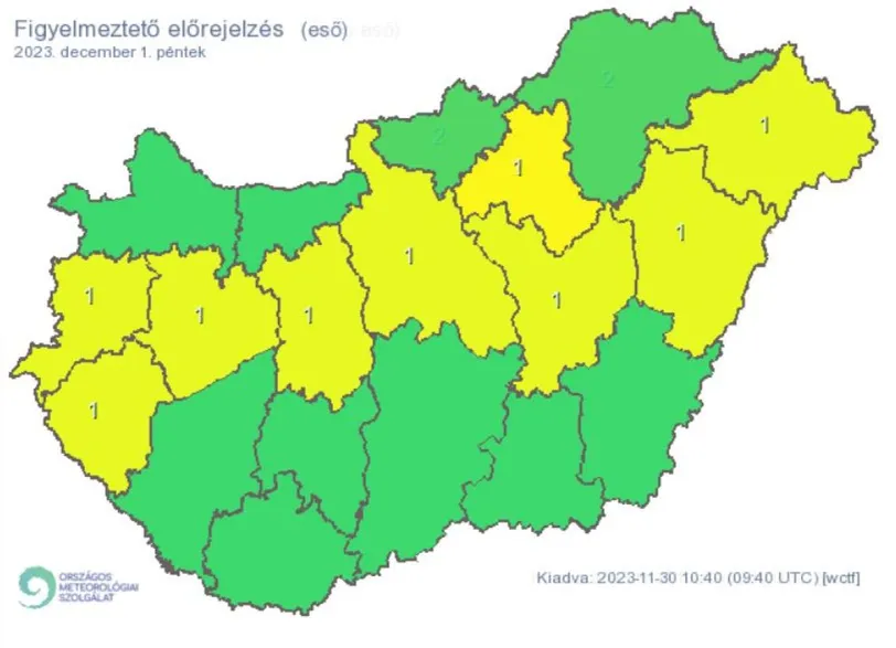 Ónos veszélye miatt ismét kiadta az elsőfokú, citromsárga riasztást az Országos Meteorológiai Szolgálat. Az érintett területeken néhány tized milliméter csapadék eshet.