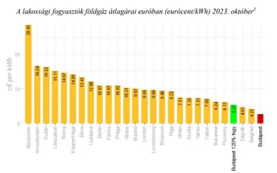 Ez azt jelenti, hogy Bécsben a fogyasztók jelenleg közel ötször annyit fizetnek a gázért, mint Budapesten, az áramért pedig közel a háromszorosát.