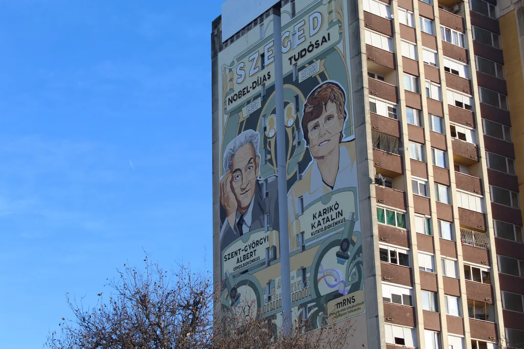 Hihetetlen gyorsasággal, mindössze egy hónap alatt készítette el nyolc művész Karikó Katalin és Szent-Györgyi Albert közös portréját Szegeden. A falfestményt a Temesvári körút 36. alatt található tizenhét emeletes társasház oldalára készítették el. A Ripost elment megnézni és leesett kollégánk álla az alkotás láttán.