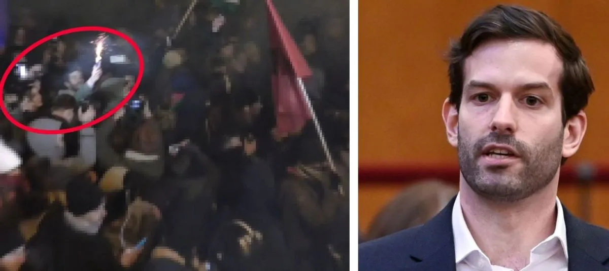 Ezek között az agresszív tüntetők között jelent meg Fekete-Győr András is, aki bátran odaszegődött vandálok közé, az esetről készült videófelvétel tanúbizonysága szerint égő füstgránátot is dobott a Parlamentet védő rendőrsorfalra.