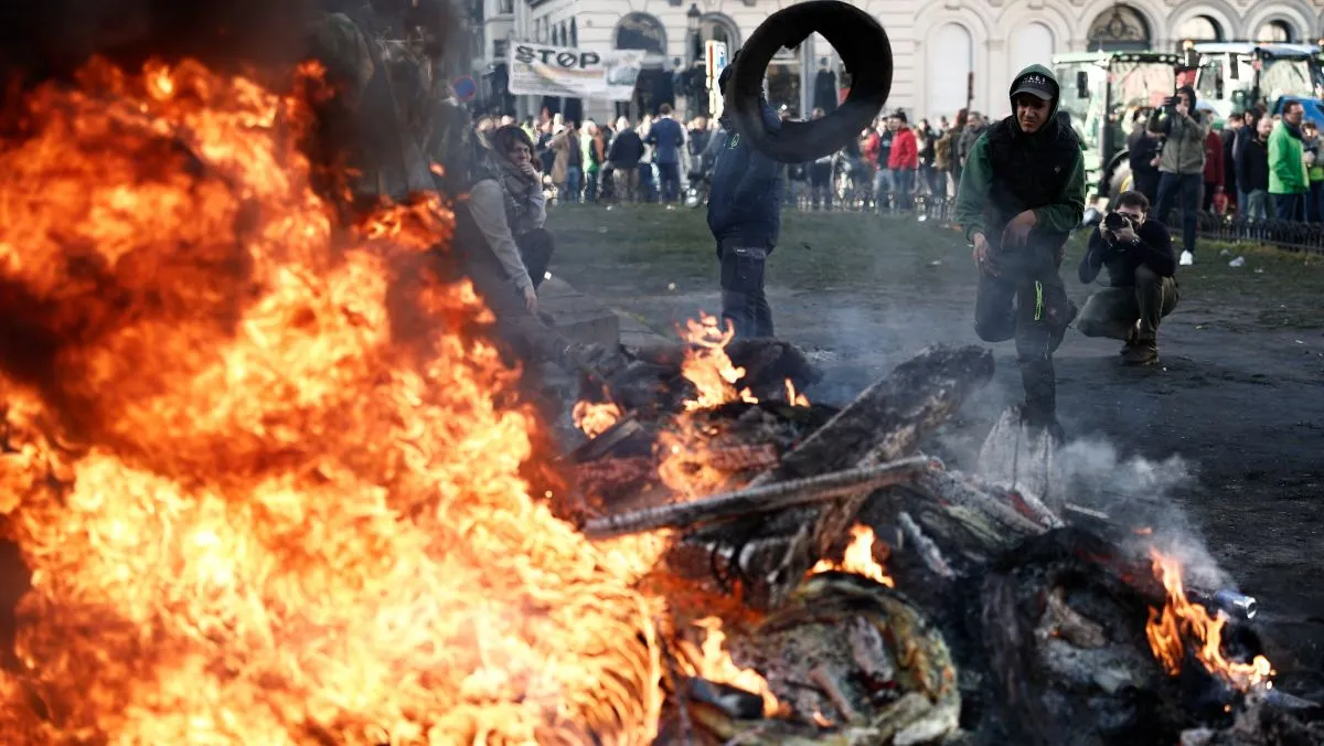 Gazdatüntetést tartottak a csütörtöki EU-csúcsra időzítve Brüsszelben az unió elhibázott agrárpolitikája miatt. Az elsőként Németországban kirobbant gazdatüntetések után a gazdatársadalom több nyugat-európai országban is tömegdemonstrációba kezdett. A tüntetések elérték az Európai Unió brüsszeli központját is. Csütörtökön a gazdák az Európai Tanács rendkívüli ülésével egyidejűleg több mint 1000 traktorral vonultak fel az európai negyedben.