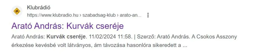 Egy olyan beszólásért, mint amilyet Arató András, a Klubrádió elnöke megengedett magának véleménycikkében, egy kocsmában alighanem alapos verést kapna az érintett nők férjétől. Az eredetileg Kurvák cseréje című cikkében Novák Katalin köztársasági elnök és Varga Judit volt igazságügyi miniszter lemondását kommentálta Arató, majd az írás címét először megváltoztatta, végül az egész cikket törölte a Klubrádió honlapjáról.