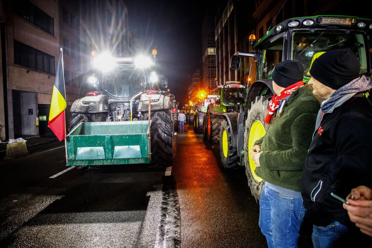 A gazdák szénabálákat gyújtanak fel és petárdákat lőnek a belga fővárosban.