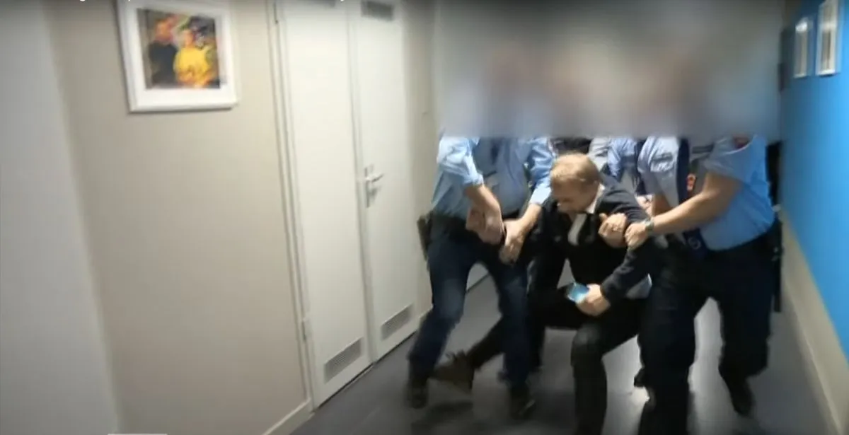 Amikor nem sikerült bejutnia a stúdióba, akkor a hírszerkesztőséget vette célba, ennek érdekében pedig szabályos dulakodásba kezdett a biztonsági őrökkel, egyiküket el is gáncsolta. A dulakodás során a munkáját tisztességesen végző egyik biztonsági őr 8 napon túl gyógyuló, súlyos sérülést szenvedett.