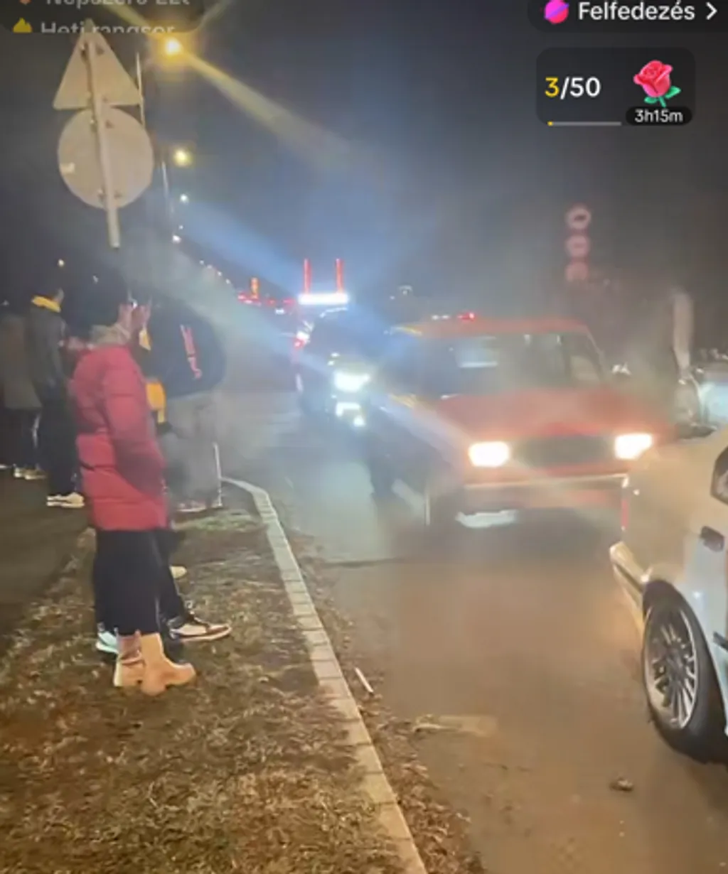 A száguldó cirkuszt szombaton este 9 órakor kezdték el és hosszú órákon át tartott. Először felvonultak az autókkal, amivel komoly dugót okoztak az érintett útszakaszon. A nézők itt is, ahogy Fóton, az út szélén tömörültek és nézték a driftelő, durrogtató kocsikat. Bármelyik pillanatban kisodródhatott volna egy autó és emiatt tömegkatasztrófába is torkollhatott volna a találkozó. Volt olyan, aki luxusautóval érkezett, de még kis polskival is érkeztek az autósok. Azok, akik nem tudtak megjelenni a tömegbulin, otthonról figyelhették az eseményeket, ugyanis többen is élőztek a TikTok csatornájukon.