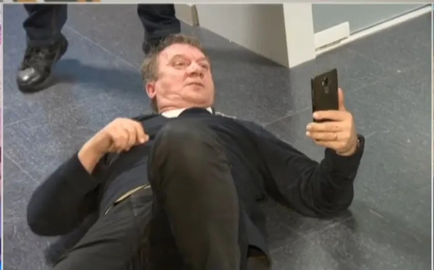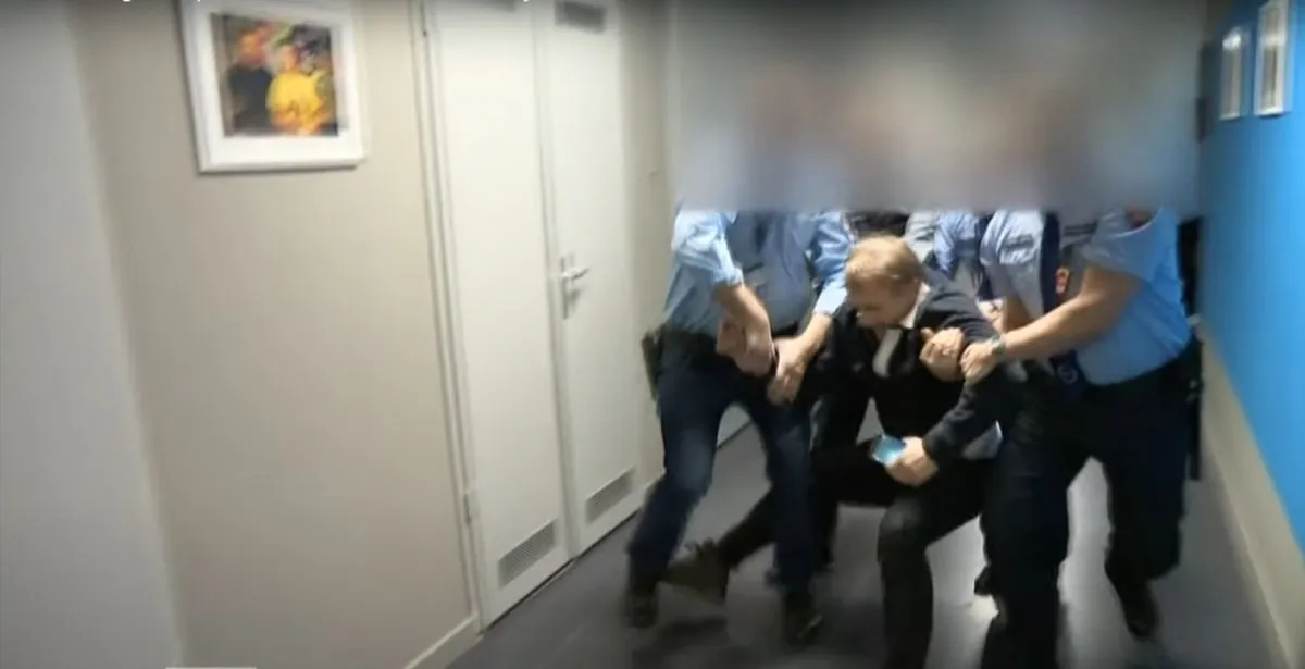 Nekiment a biztonsági őröknek, dulakodott velük, egyiküket elgáncsolta, bútoron keresztülmászva próbált bejutni az élő adásba, földön fetrengett és személyiségi jogokat, emberi méltóságot sárba tiporva, tiltakozásuk ellenére élőben videózta a Magyar Televízió munkatársait.