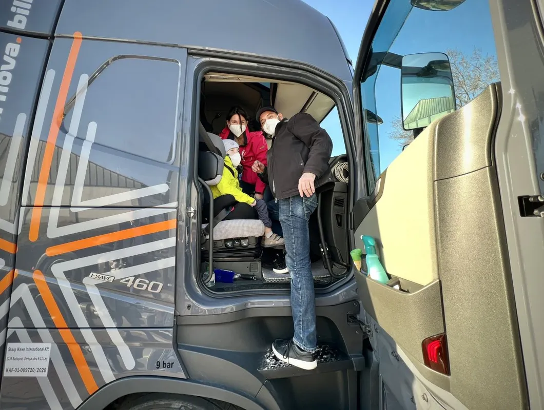 Tomika arca azonnal kivirult, amikor meglátta a parkolóban rá váró kamionokat. Csillogó szemeivel pásztázta a kedvenc járműveit. Hamar át is szállt édesanyjával az egyikbe és elindultunk a végállomásra: a reptérre. A kisfiúnak mindig is nagy álma volt, hogy repülhessen, így izgalma egyre csak fokozódott.