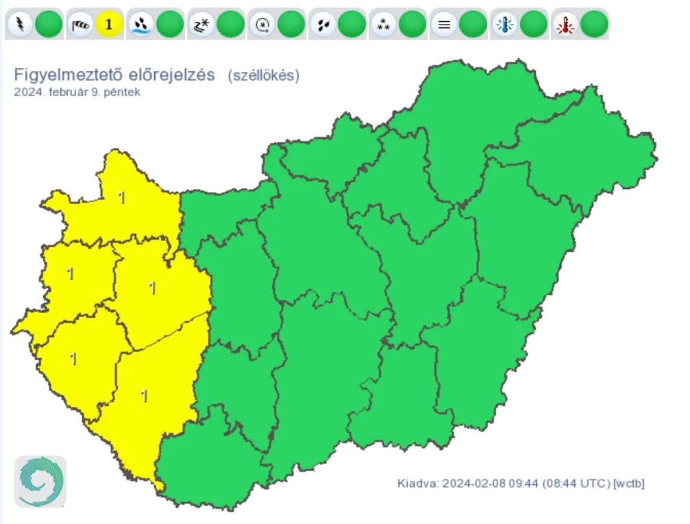 Ismét viharossá fokozódik a szél: a Magyar Meteorológiai Szolgáltató Nonprofit Zrt. a mai napra citromsárga riasztást adott ki öt vármegyére is. Veszélyjelzésükben arra figyelmeztetnek, hogy a várt, legerősebb széllökések meghaladhatják akár a 70 km/h-t is.