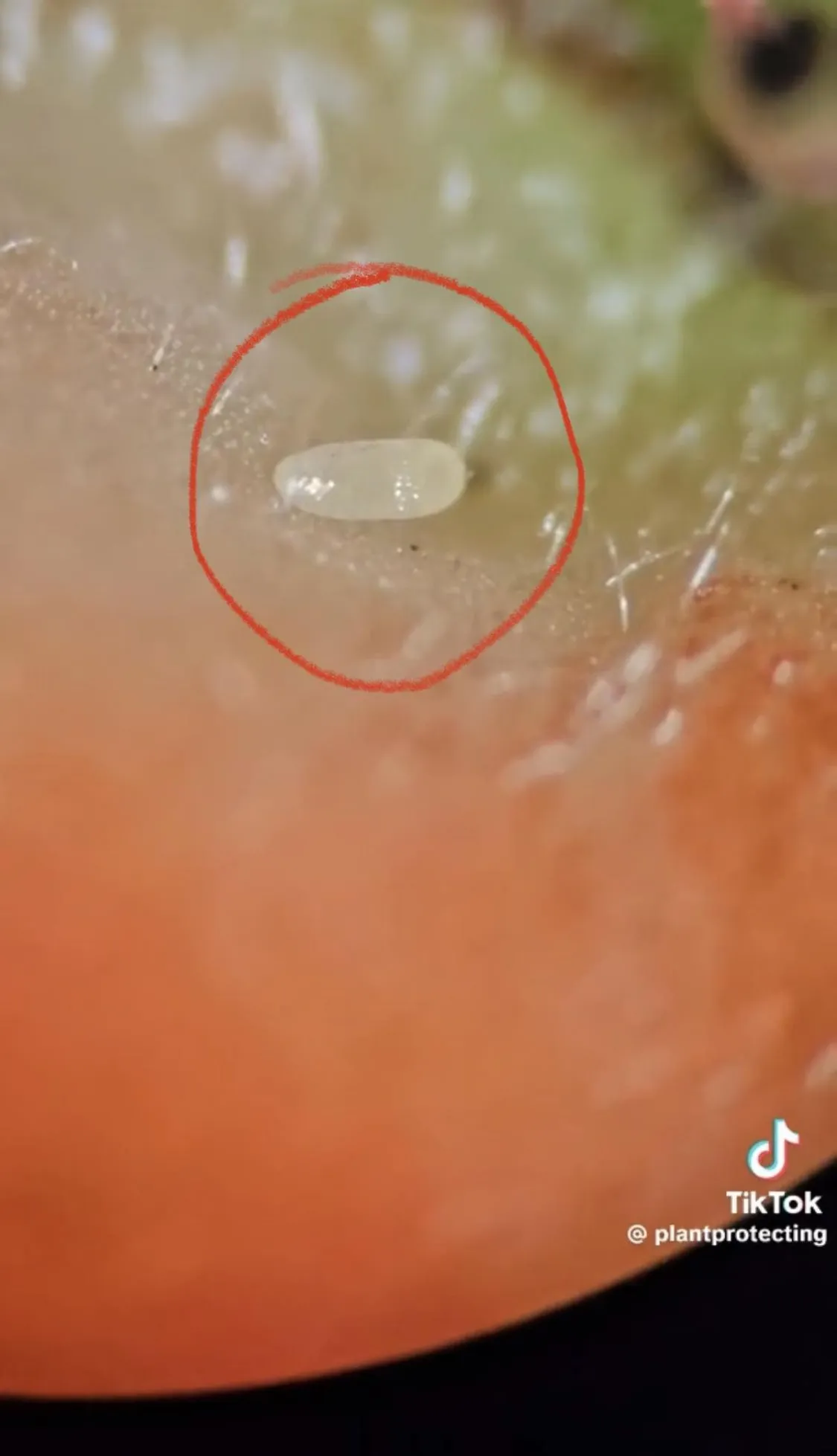 A kis élőlényeket ott kell keresni, ahol meg tudnak bújni, tehát a levél alatt. Nem sok keresgélés után megtaláltam egy ugróvillást, ők általában talajlakók, vagy talajhoz közeli életmódot folytatnak, ez megmagyarázza azt, hogy mit keresetett a szamócán. Találtam még egy hosszúkás petét, vagy tojást; pontosan nem tudom, hogy mi lesz belőle.