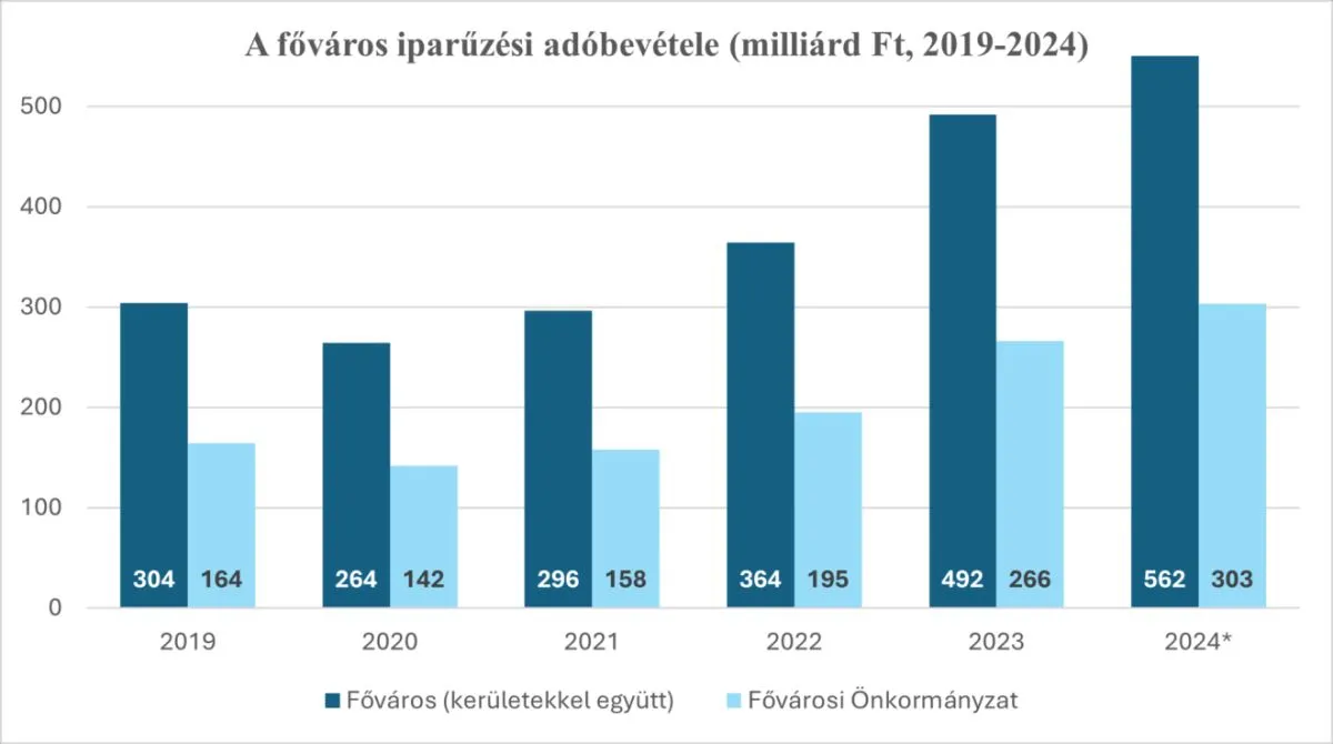 Míg 2019-ben a Tarlós István vezette fővárost illető iparűzésiadó-bevétel a 164 milliárd forint volt, 2024-ben a Karácsony-féle városvezetés számára már 303,5 milliárd forint állhat rendelkezésre. A 2023-as fővárosi költségvetés teljesítéséről zárszámadás ugyan még nem készült, de havi bontású részteljesítéseket közöl a főváros. Ezek alapján Budapestnek 2023. január-december között 265,5 milliárd forint volt az iparűzésiadó-bevétele, amely azt jelenti, hogy a 2022. évi azonos időszakához képest (195 milliárd forint) több mint 70 milliárd forinttal több adót sikerült begyűjtenie. A várakozások szerint 2024-ben a Fővárosi Önkormányzatot illető iparűzésiadó-bevétel elérheti a 303,5 milliárd forintot, azaz a választási évben Karácsony Gergely 37 milliárddal több iparűzési adóval gazdálkodhat.