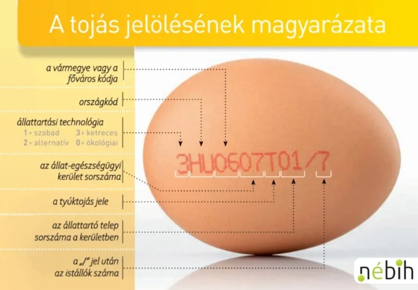 Az étkezési tojásokon és csomagoláson egy számsor található. A tojásokat „A ”és „B” minőségi osztályokba sorolják, a kereskedelemben csak „A” minőségű termékekkel találkozhatunk - olvasható a Nemzeti Élelmiszerlánc-biztonsági Hivatal oldalán. Az „A” minőségű tojásokat tömegük és méretük alapján sorolják S, M, L, és XL osztályba és mindegyiknek a héján nyilvántartási szám található. Ez a szám 7 részből áll és a segítségével többek között azt is megtudhatjuk, hogy melyik országból, városból, telepről és gazdaságból származik a tojás, és hogy a tojó tyúk ketrecben vagy szabadon él-e. Az első számból kiderül, hogyan tartják a tojó tyúkot. Ha 1-es számmal kezdődik a tojáson lévő számsor, akkor a tyúk szabadtartású, a kettes szám az alternatív tartásra utal, a hármas pedig a ketrecest jelenti. A nullával kezdődő számsor ökológiai tartásra utal.