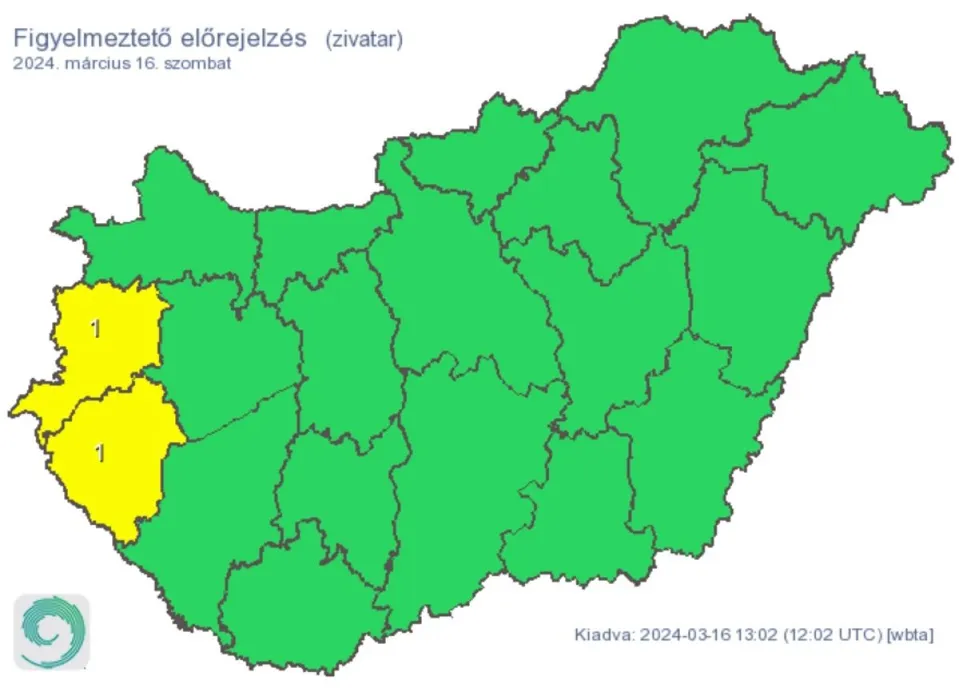 A HungaroMet oldala elsőfokú riasztást adott ki Vas és Zala vármegyére. Mint írják, Dunántúlon (nagyobb valószínűséggel északnyugaton) néhol zivatar alakulhat ki. Egy-egy zivatarra alacsony valószínűség mellett az éjszakai órákban is van esély. Északkeleten és nyugaton hajnalra foltokban pára és köd képződhet.