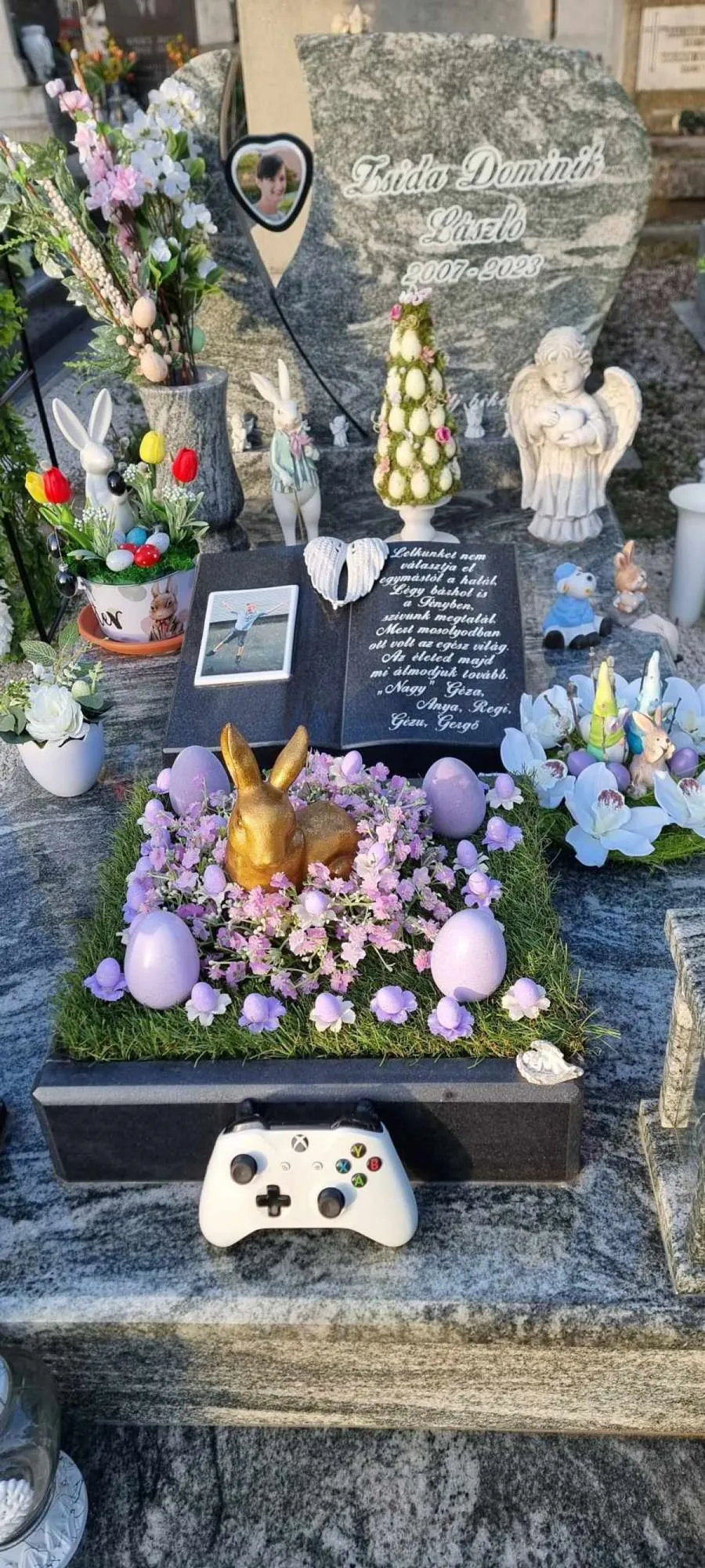 Szívszorító: Húsvéti nyuszik és tojások díszítik a 15 évesen elhunyt Dominik sírját