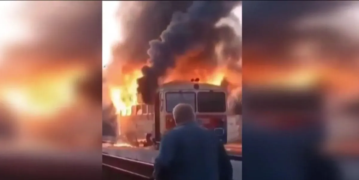 Kigyulladt és hatalmas lángokkal égett egy utasokkal teli motorvonat Hajdú-Bihar vármegyében, a vámospércsi vasútállomás közelében.