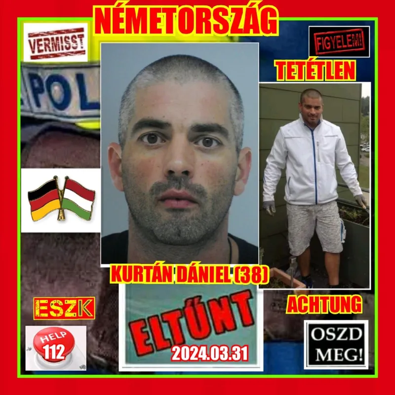 Közel három hete nem adott életjelet magáról Kurtán Dániel. Családja és barátai nagyon aggódnak érte, mert utoljára március 28-án halottak róla. Akkor még bement a Baden Würtenbergi munkahelyére, ahol szobafestőként dolgozott. Aznap este a szállásán néhány dolgot magához vett, de azóta senki sem látta, és életjelet sem adott magáról.
