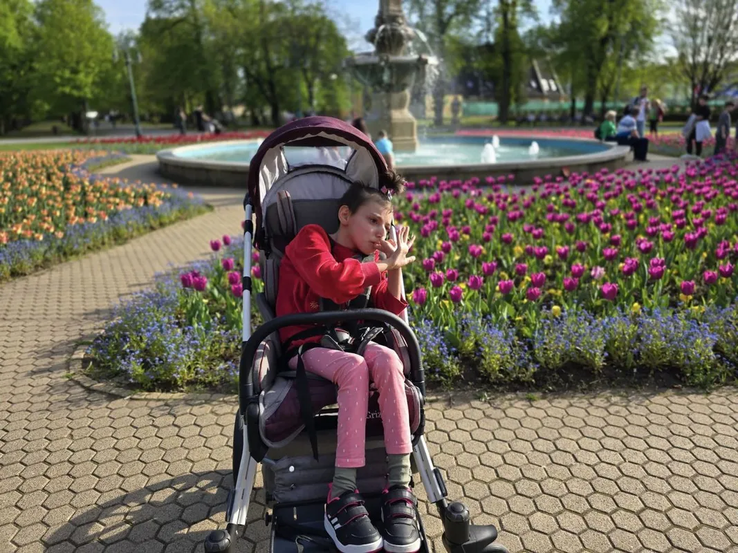 Az olvasóinknak köszönhetően Karola megkaphatta a számára megfelelő rehabilitációs gyerekkocsit, amiben már kényelmesen tud utazni és a hosszú séták alatt sem fárad el. A tavasz beköszöntével Egerbe látogattak, ahol az Érsekkertben ültetett tulipánokban gyönyörködhetett a lány.