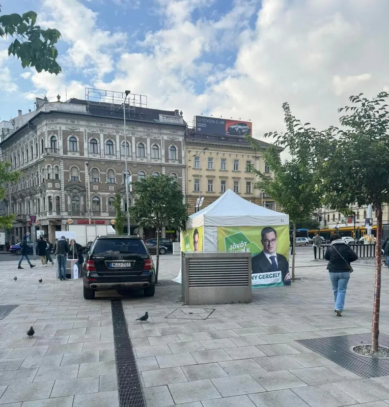 Pofátlanul, a Blaha Lujza tér közepére állított be egy luxusterepjárót Karácsony Gergely. A hatalmas fekete autót a főpolgármester sátra mellé parkoltatták le, mintha ezzel a kocsival őriznék a helyszínt.