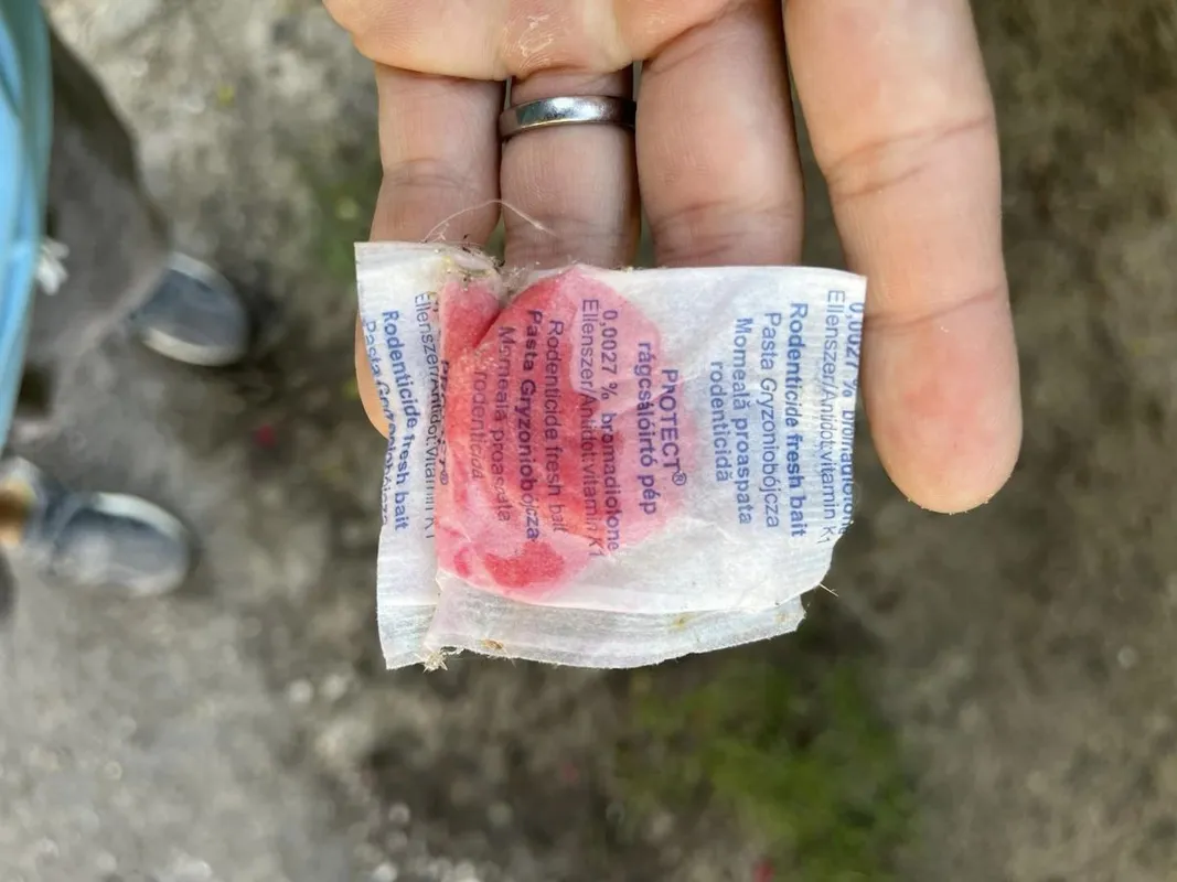 – kezdte Bernadett. „Ez egy puhább csomagolásban elhelyezett színes termék, aminek a csomagolására az volt írva, hogy ”rágcsálóírtó pép”. Mi éppen a kiskutyánkat sétáltattuk a parkban, amikor a kutya odaszaladt a csomaghoz. Én midig kínosan ügyelek rá, amikor az utcán vagyunk, nem szeretem, ha a szájába vesz mindent. Itt is ez volt a szerencsénk, mert nem szerettem volna megtudni, hogy mit tesz a kutyámmal ez a méreg, ha esetleg megrágja. Fogtam, felvettem a földről és mérgelődve kidobtam egy közeli kukába… Ezután nem is foglalkoztam a dologgal, de utána megláttam a posztot, amiben pár nappal később szintén ilyen csomagokat fotóztak le, hogy valaki eldobálta azokat. Ekkor gondoltam, hogy ez nem véletlen."