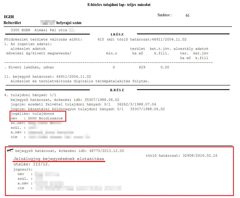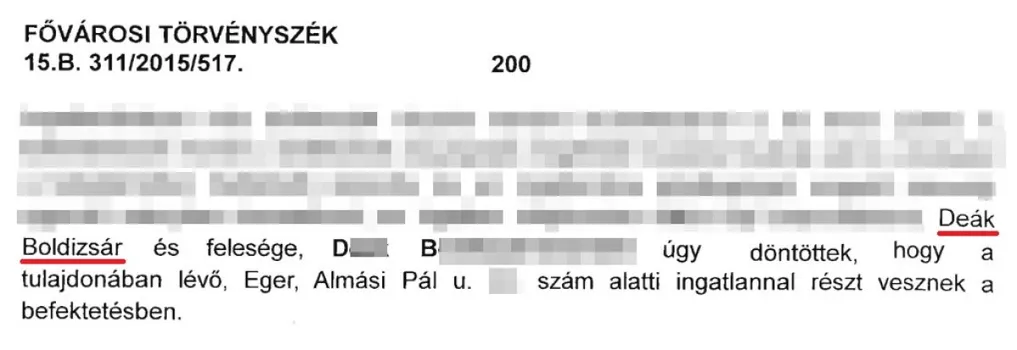 A Tisza-párti politikus annyira magabiztos volt, hogy még a felesége, D. Boldizsárné nevén lévő egri családi házukra is jelzálogjogot jegyeztetett be, ezt is bevitte a pilótajátékba kamufedezetként. Aztán miután a bűnszervezet lebukott, könnyedén töröltette a kamu jelzálogot.