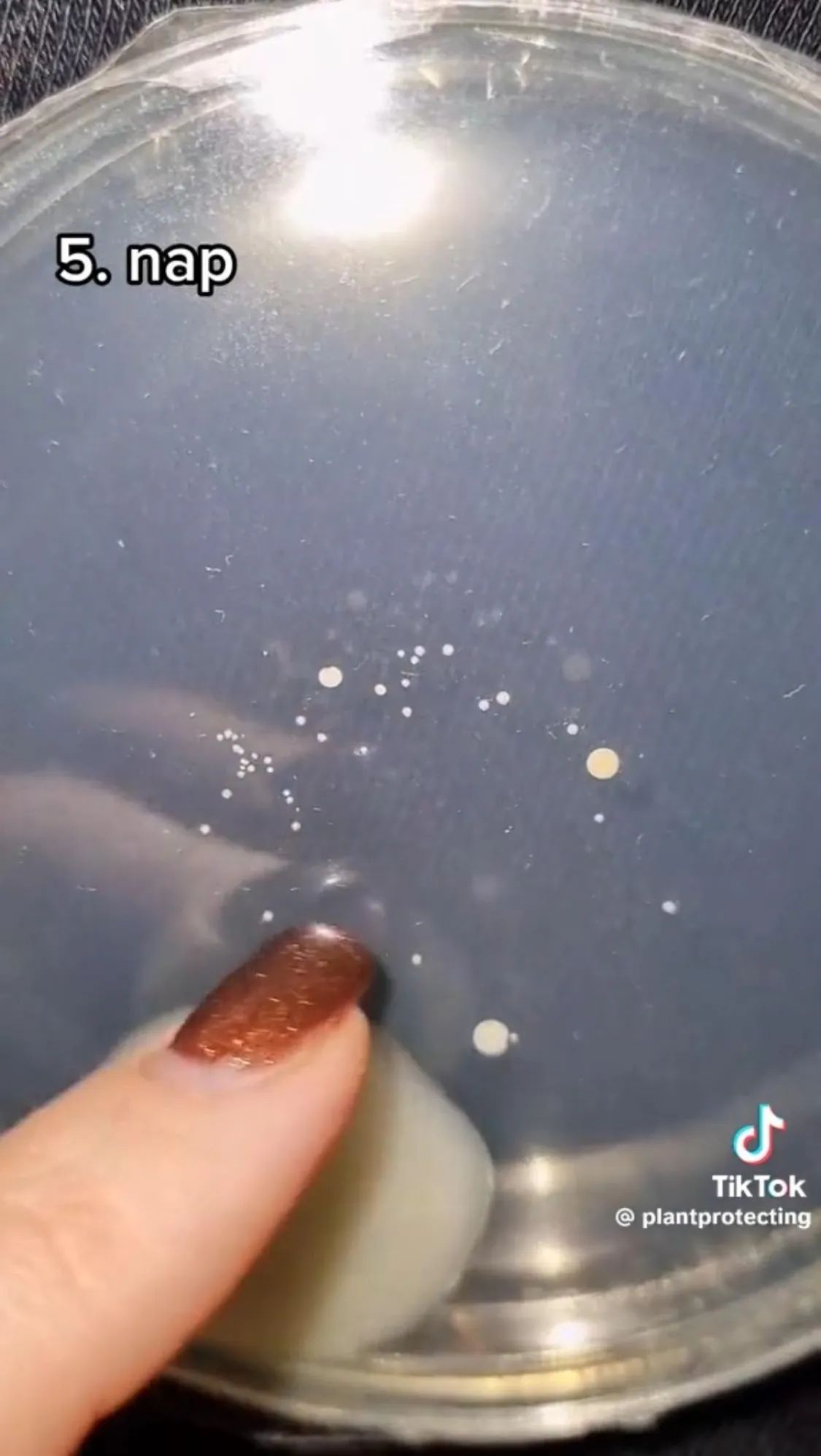 Pici, apró, szerintem ugyanolyan baktériumkolóniák jelentek meg, ezek tovább növekedtek a napok elteltével, illetve még egy sárgás, krémes is megjelent. Szerintem ez egy teljesen elfogadható eredmény lett
