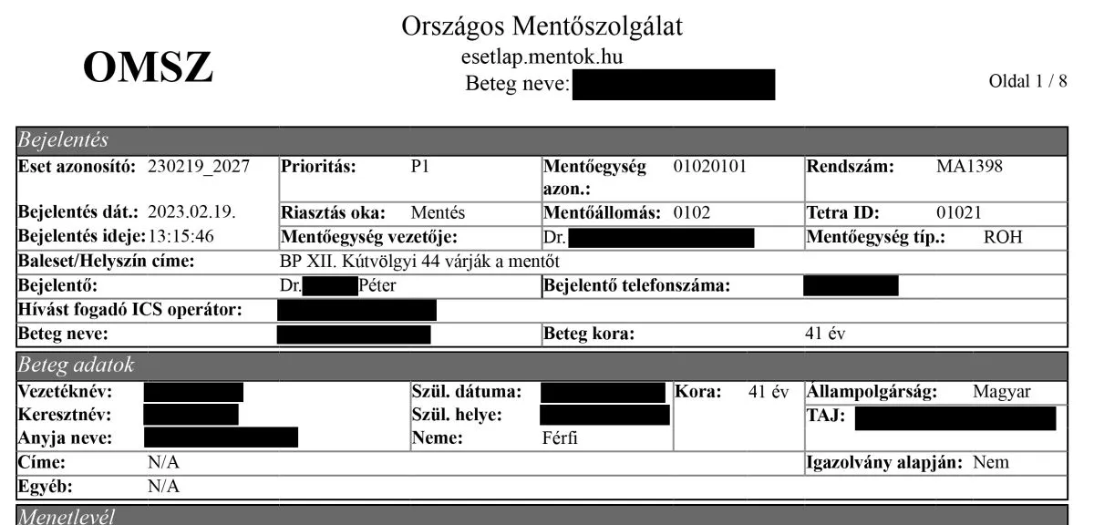 A Bors birtokába jutott az Országos Mentőszolgálat jegyzőkönyve.