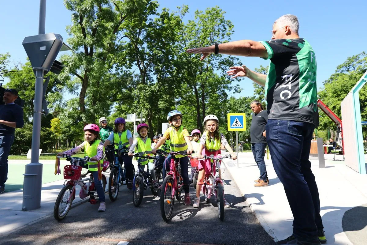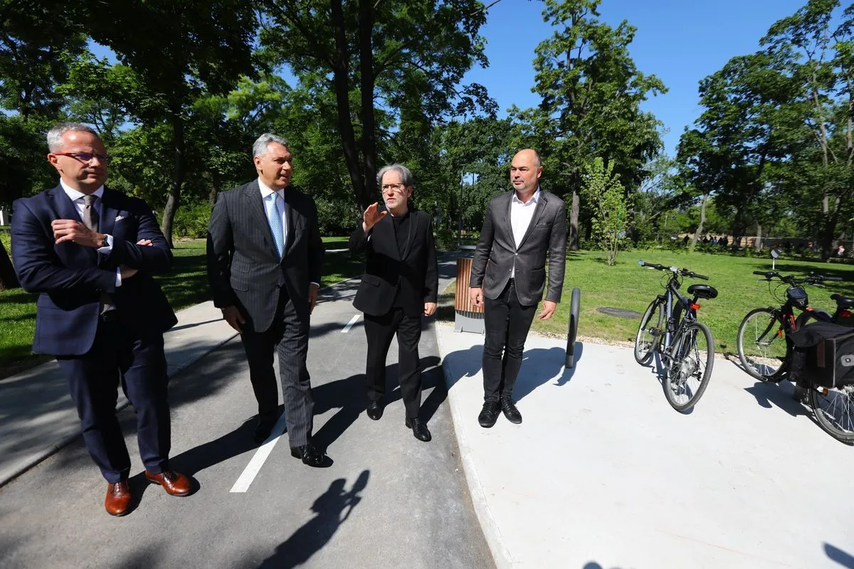 A megújult KRESZ parkot Lázár János építési és közlekedési miniszter, Baán László, a Liget Budapest projekt miniszteri biztosa és Gyorgyevics Benedek, a Városliget Zrt. vezérigazgatója adta át.