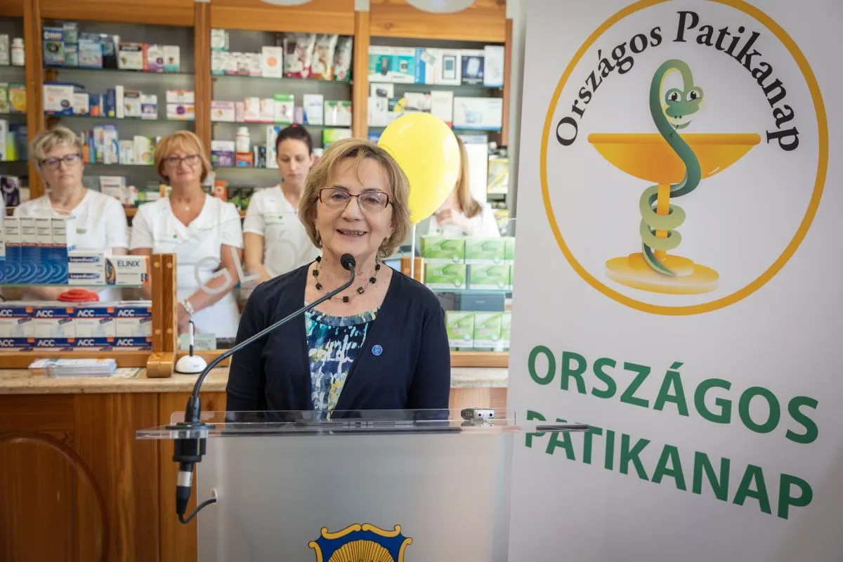Prof. Dr. Szökő Éva, a Magyar Gyógyszertudományi Társaság (MGYT) elnöke a gyógyszeripar dolgozóinak felkészültségét, hozzáállását, elszántságát, elhivatottságát méltatta, valamint a gyógyszertárakban dolgozók tanácsadásának fontosságára hívta fel a figyelmet.