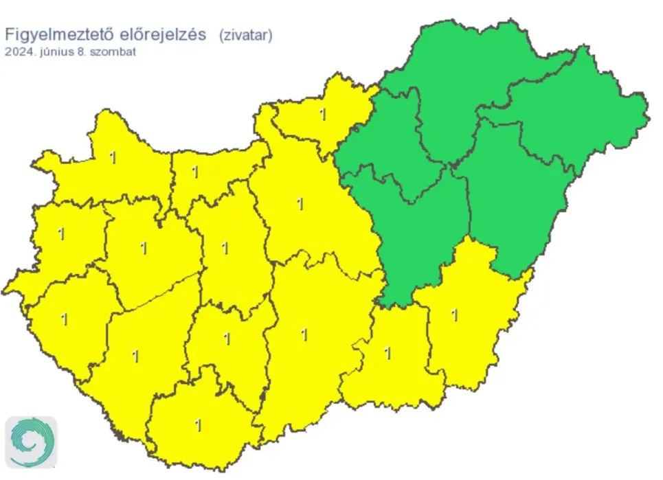 Szombaton estig napos, majd gomolyfelhős idő valószínű. Estétől aztán nyugat felől egy kiterjedt zivatarrendszer érkezik, mely fokozatosan kelet felé halad, kb. éjfélig éri el a Duna vonalát. 29 és 33 fok közötti meleg, délen hőség lesz - írja a Köpönyeg. A HunagroMet figyelmeztetése szerint tizennégy vármegyében csaphat le a zivatar szombaton és közülük négyben hőségriasztást is elrendeltek.