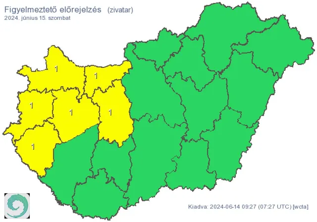 Szombat estig ragyogó napsütésre és 24-30 fokos melegre számíthatunk, estétől azonban magasra törnek a gomolyok, és zápor, zivatar is előfordulhat. A HungaroMet Nonprofit Zrt. elsőfokú riasztást adott ki a zivatarok miatt Fejér, Győr-Moson-Sopron, Komárom-Esztergom, Vas, Veszprém és Zala vármegyére. Ezeken a területeken elsődleges veszélyforrást a villámlás jelent, emellett esetenként szélerősödés, jégeső is előfordulhat!