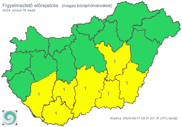 Szerdán szinte zavartalan lesz a napsütés, országossá válik a hőség, délután már 30-36 fok várható. Bács-Kiskun, Békés és Csongrád-Csanád vármegyében másodfokúra emelték a riasztás fokozatát, ami azt jelenti, hogy ezeken a területeken a napi középhőmérséklet 27 fok felett alakulhat.