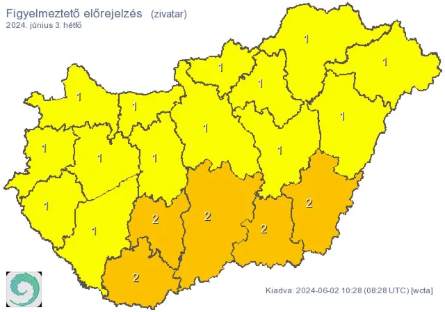 Veszély! Hevesebb zivatarok kialakulására lehet számítani. A villámlások mellett kockázatot jelent a zivatarokat kísérő szél, jégeső is!