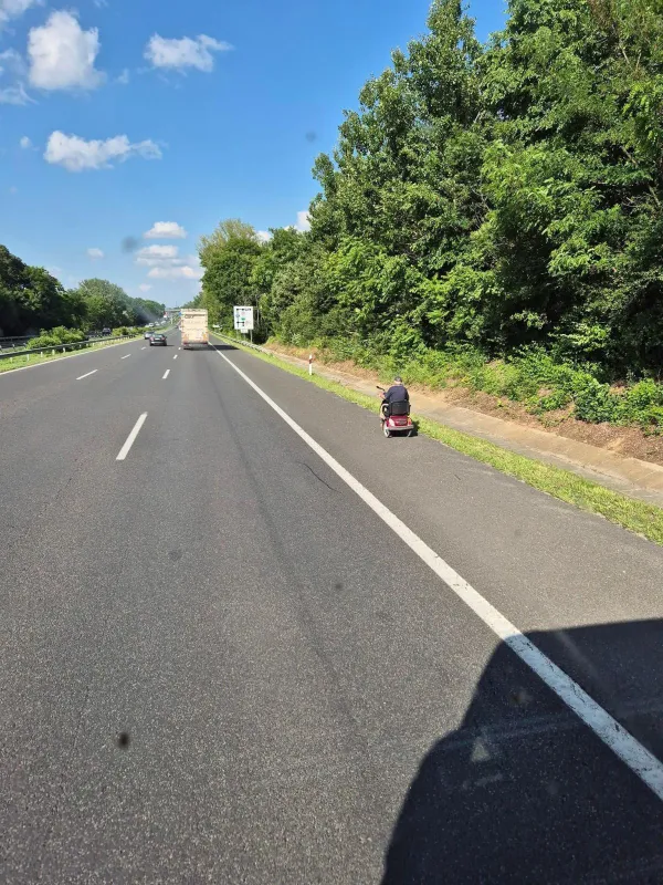 Egy idős úr úgy gondolta, hogy a háromkerekű, piros rokkantkocsijával útnak indul; ezzel alapvetően nem is lenne probléma, de felhajtott az M7-es autópályára és a főváros felé vette az irányt. „Kis kalandozásával” veszélybe sodorta saját és mások testi épségét is.