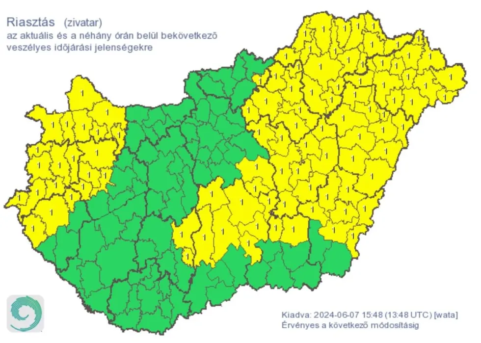 Szombat délutánig csak kevés helyen, főleg az ország délnyugati felében lehet zivatar, majd délutántól nyugat, délnyugat felől egyre többfelé lehet számítani előfordulásukra. Az erősebb gócokhoz intenzív csapadékhullás (ált. > 20-30 mm, lokálisan ennél több sem kizárt), viharos (~60-80 km/h) széllökés, illetve jégeső (~1-2 cm átmérő) társulhat.