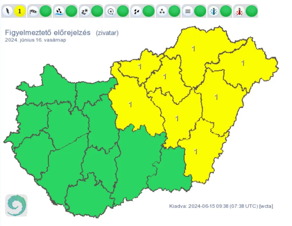 A HungaroMet Nonprofit Zrt. veszélyjelzésében citromsárga riasztást adott ki az ország azon részeire, ahol továbbra is lehet majd zivatarokra számítani.