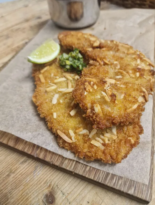 A mi rántott húsunk alapanyaga egy hazai bió mangalica tenyészetből való, annak is az úgynevezett aranypecsenye részéből készül. Szeretünk kísérletezni és olyan húsrészekkel dolgozni, amitől mások félnek, tartanak, nálunk azért ez lett a befutó, mert ez különösen zsíros, szaftos hús.