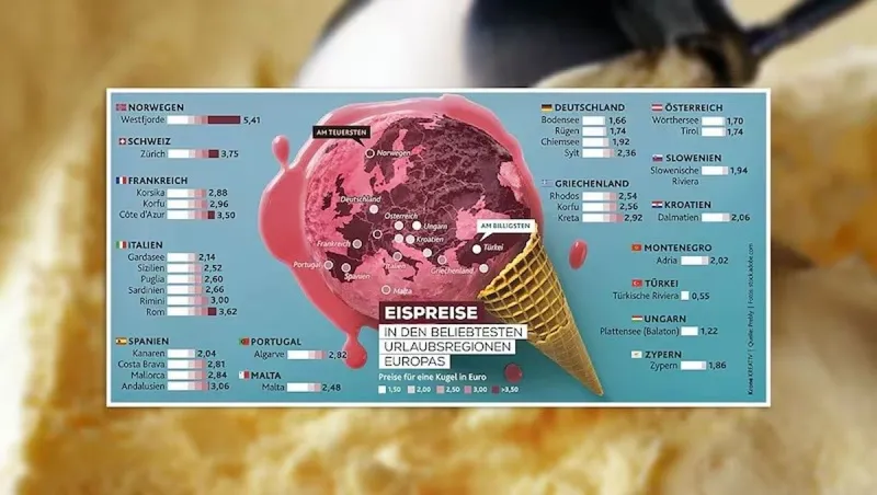 Nyár elején közölt egy felmérést az osztrák Kronen Zeitung lap, amelyben azt vették górcső alá, hogy mennyibe kerül az európaiak közkedvelt nyaralóhelyein a nyár kedvenc édessége. Az európai turisztikai régiókban egy gombóc fagylalt átlagosan 2,39 euróba kerül, ami nagyjából 937 forint.