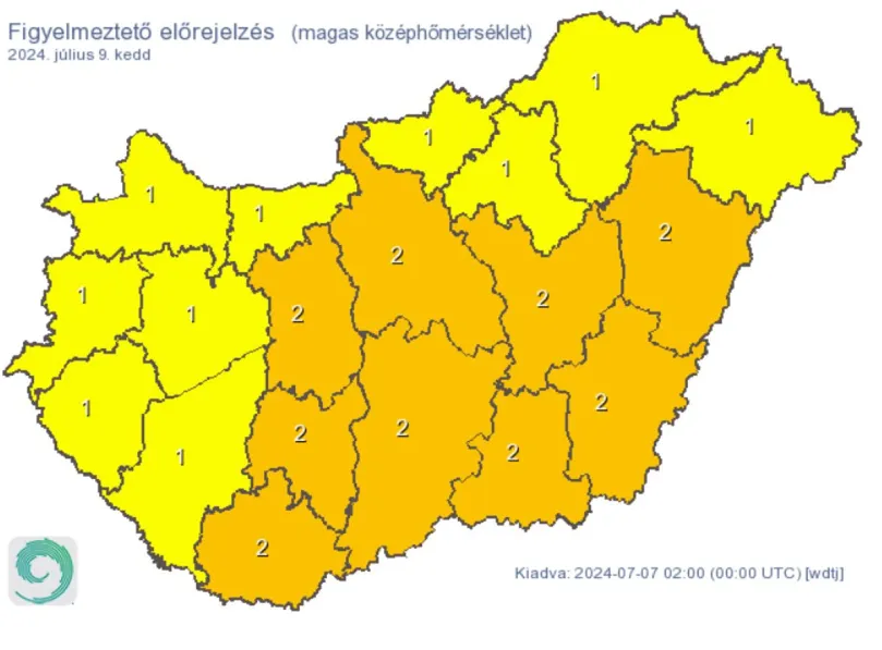 Kedden szinte zavartalan napsütés várható, kizárt a csapadék. 36-37 fok körül alakul a hőmérséklet délután, tehát délen akár 38-39 fok is lehet. Az ÉK-i szél csak néha élénkülhet meg. Kedden már az egész országra riasztás van kiadva a hőség miatt, több vármegyére másodfokú riasztás van érvényben.