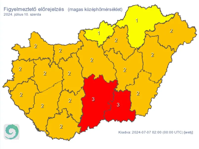 Szerdán és csütörtökön igazi nyaralóidőre van kilátás, sok napsütéssel, eső nélkül. Fokozódik a hőhullám, hiszen a legtöbb helyen már 35 fok feletti értékeket mutathatnak a hőmérők, a Dél-Alföldön esély van 40 fokos forróságra is! Szerdára már harmadfokú hőségriasztást is kiadtak a met.hu szerint.