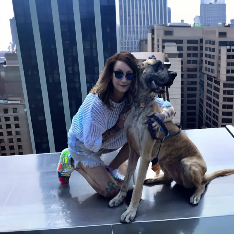 A lány nagyon szereti ezt a képet a kutyájával, viszont nem tetszik neki a háttér, ezért megkérte a művészeket, hogy legyen a háttér valami vagányabb.