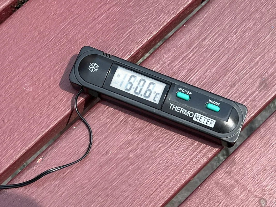 De a kánikula legnagyobb hősével csak az út végén találkoztunk, amikor megálltunk egy korty üdítőért egy sütödében. Megkértük az eladót, hogy vegye be magához pár percre a hőmérőnket a pultba, ahol dolgozik. Ott 47 fok volt… A srác 12 órás műszakban dolgozik, de jól bírja.