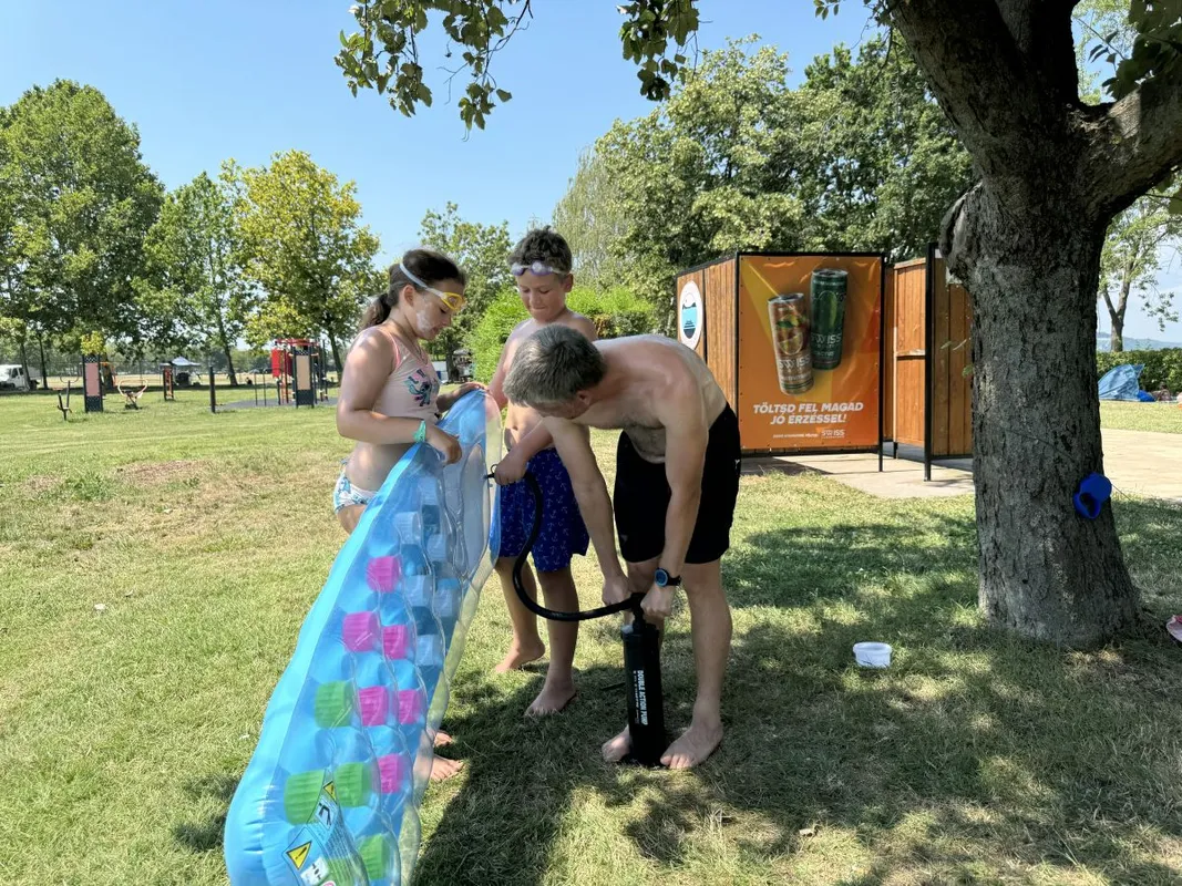 Tibor a két gyermekével, Ákossal és Boglárkával, a feleségével és a kedvencükkel, Pollyval érkezett Zamárdiba Szegedről. Éppen a gumimatracukat pumpálták, amikor megszólítottuk őket. Ők csütörtökön az utolsó napjukat töltötték a Balatonnál, ami szomorúsággal töltötte el a gyerekeket, nagyon jól érezték magukat. A szülők viszont lapunknak bevallották: ők kicsit kevésbé bánják, egy hét folyamatos odafigyelés közepette most elég volt nnyi, ideje, hogy visszatérjen az élet a szokásos medrébe.