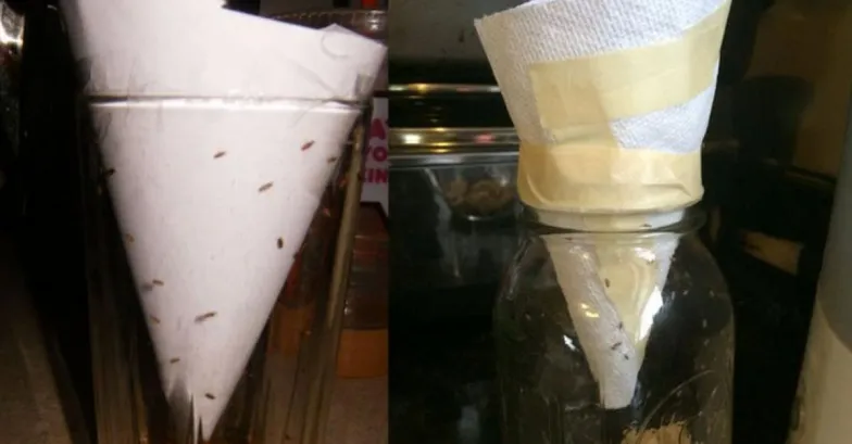 4. Van ezeknél egy humánusabb megoldás, ha valaki nem szeretné megölni a muslicákat. Rakj egy befőttes üveg aljába pár szem banánhéjat, illetve más gyümölcsöket, majd egy papírlap segítségével készíts egy lefelé ívelő tölcsért, ügyelj rá, hogy a befőttes üveged oldalán ne tudjanak kirepülni. Körülbelül így kell kinéznie: