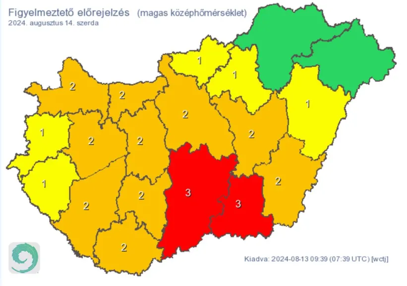 Szerdán folytatódik a nyaralóidő sok napsütéssel. Esetleg elvétve lehet frissítő csapadék. Az ország nagy részén forróság lesz 35 fok körüli maximumokkal - írja a Köpönyeg. A következő napokra végig figyelmeztető előrejelzést adott ki a met.hu a hőség miatt.