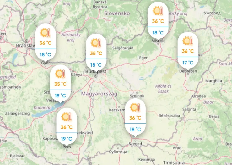 Tökéletes strandidővel, rekkenő hőséggel indít a hétvége, amit már-már csak vízparton lehet majd kibírni. Nem csökken ugyanis augusztus utolsó napján sem a hőmérséklet, ami annak is köszönhetően, hogy csak néhol jelennek meg felhők az égen, az északkeleti szél is gyenge és mérsékelt marad. Zivatar maximum a hegyvidéki területeken alakulhat ki a délutáni órákban. A nappali csúcshőmérséklet 35-36 fok körül alakul.
