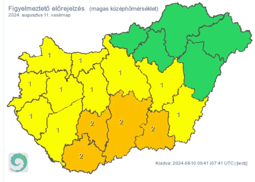 Néhány vármegyére másodfokú riasztást adtak ki.