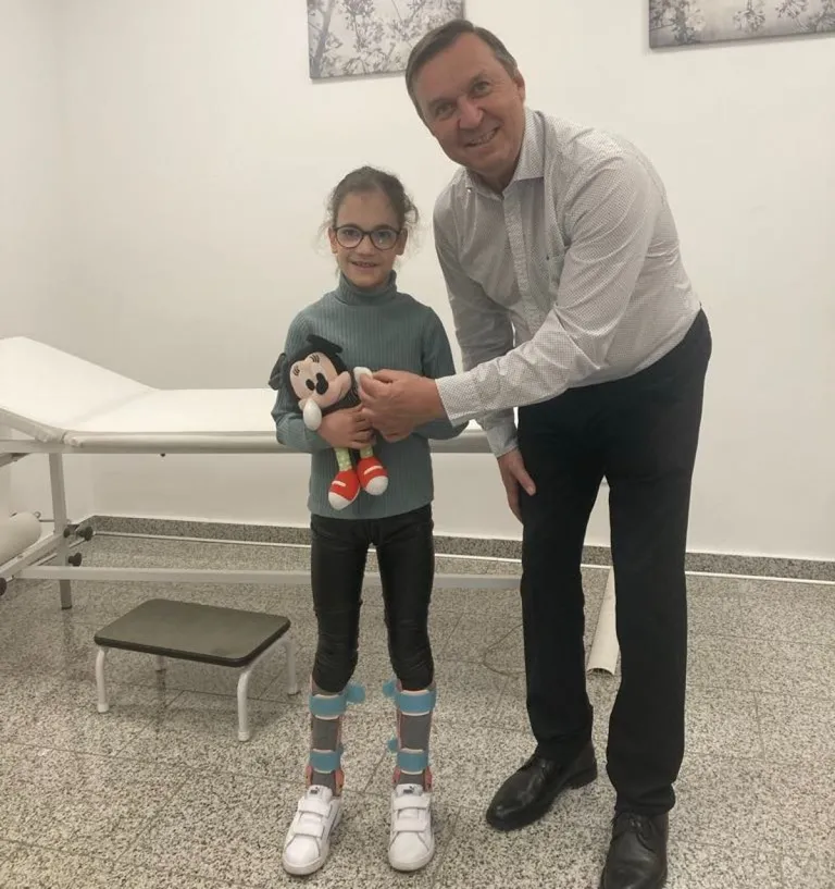 Szofi járóképes, de mindkét lábán sínt kell hordania. Ha nem tenné, a lábfejei befelé fordulnának