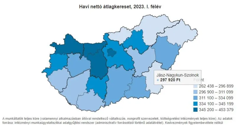 Fővárosi és vármegyei átlagkeresetek a KSH térképe alapján