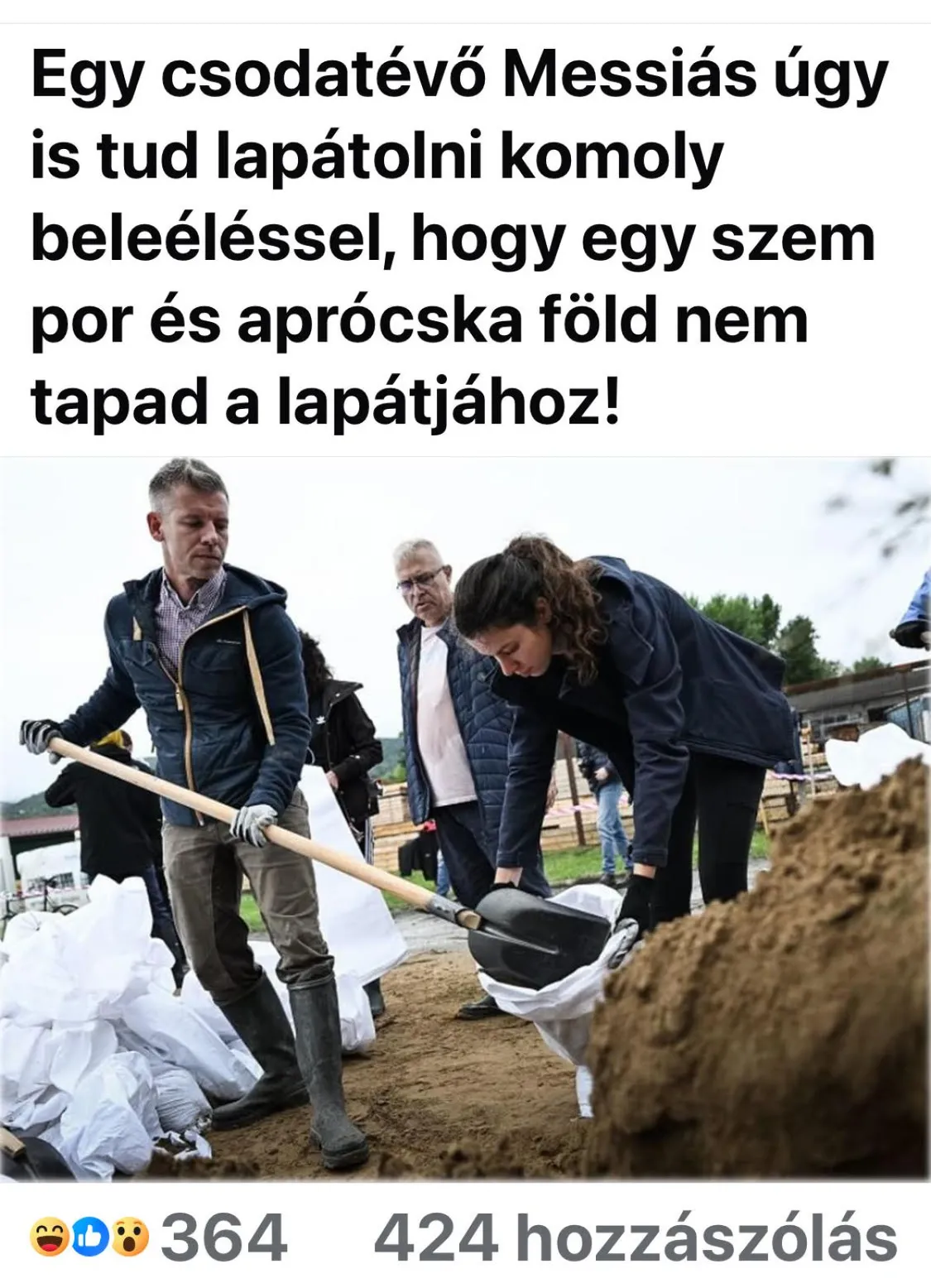 Futótűzként terjedt a neten az a fotó Magyar Péterről, amelyen éppen úgy csinál, mintha homokot lapátolna, de a lapátján még egy szem homok sem látható.