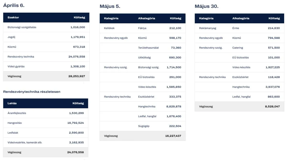 Később a párt ugyan közzétett egy negyedéves beszámolót, ebben viszont valamiért ömlesztve szerepelnek a rendezvények költségei, így a Hősök terén tartott esemény pontos költségvetését soha nem hozták nyilvánosságra.